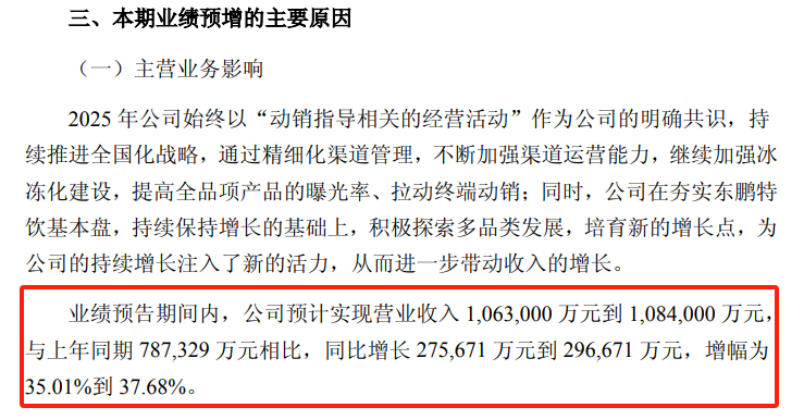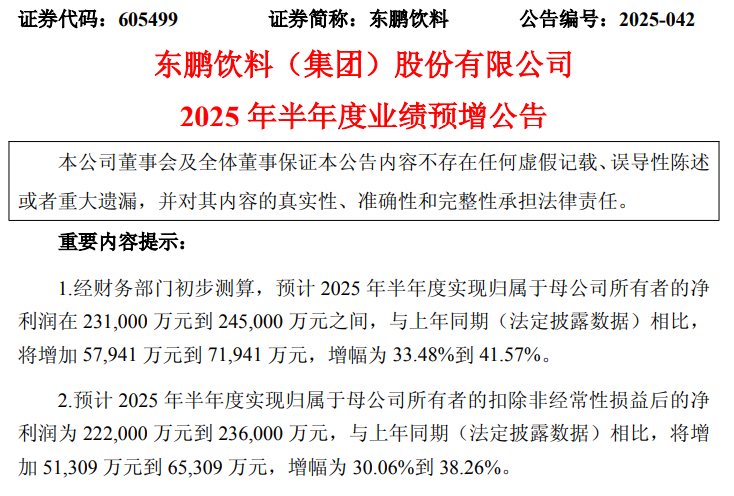 东鹏特饮营销数字化的阶段性成果:6个月营收100亿+!7月11日,东鹏饮料发布半年度业绩预增公告,预计2025年1-6月实现营业收入106.30亿元至108.40亿元,同比增长35.01%至37.68%;净利润23.10亿元至24.50亿元,同比增长33.48%至41.57%。在消费动力不足、多数饮料企业表现不及预期的背景下,东鹏延续了一贯的增长势头,取得了半年超百亿的营收成绩。