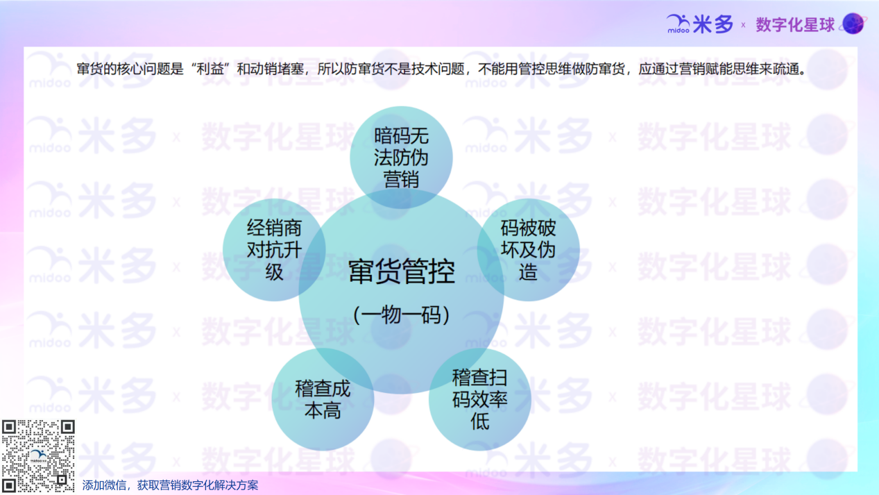 因此,“窜货不返利”机制使窜货行为变成货物在渠道间的无效流转。其货物并未在目标区域被真正的消费者购买和使用。因此,被窜货的产品在异地很难触发消费者扫码激活(或者即使被扫码,也会因异地触发预警而暴露)。这就意味着,窜货者花费成本将货物转移到异地,不仅无法通过正常销售获得合理利润,更无法激活系统后台的返利计算。窜货行为完全无法带来预期的返利收益,其核心获利路径被直接切断。 而实施窜货行为的经销商,则是这套规则下**的输家。他们不仅无法从窜货行为中获得任何返利(如前所述,窜货无法激活返利),还将面临合同约定的处罚。 从而迫使经销商的注意力从单纯追求进货量或短期冲量,强制引导到关注终端市场的实际消化能力和消费者需求满足上。经销商必须投入精力去管理终端网络、提升门店服务、开展有效的本地营销活动,才能真正促进消费者购买和扫码,从而激活返利。 五、总结 五码合一系统的成功,在于它构建了一个让窜货行为无处遁形、甚至“自我举报”的闭环体系。 物理层:多层级、互补的编码设计,使得彻底破坏成本高昂且难以实现,任何破坏行为本身就可能留下关键证据(如仅破坏外码)。 数据层:全链路扫码记录的云端“数字脚印”,让货物流向透明化,智能算法自动识别异常轨迹(如地理围栏报警、渠道绑定校验失败)。 参与层:消费者在利益驱动和习惯培养下,通过日常扫码行为成为无处不在的被动监测点。 利益层:“三赢一输”的分润规则与“返利绑定真实动销”的机制,从根本上扭转了经销商的动机,使合规收益远大于窜货收益。 当窜货者移动货物的那一刻起,破坏包装的举动、异常的地理位置信息、失效的返利链条,便已悄然构成了一条环环相扣、指向清晰的证据链。品牌方不再需要耗费巨大人力物力去“抓贼”,违规行为在系统预设的规则和技术监控下,已自行产生并暴露了足以“自证其罪”的铁证。这不仅标志着防窜货技术的重大突破,更代表着渠道治理思维从“被动堵漏”到“主动构建良性生态”的根本性转变。 关于米多 米多公司成立于2014年,是国内领先的营销数字化整体解决方案提供商,在营销领域致力于以企业业务能力(EBC)为核心,构建基于“立体连接、数据共通、流量共享、全景共鸣、全域赋能、全链共赢”的产业互联网营销服务平台,赋能企业通过“网络协同”和“数据智能”双螺旋引擎,用数字化驱动业务增长。累计服务酒类行业、快消行业、日化家清行业、化工建材行业、茶叶行业等品牌类企业逾3000家,包括茅台、可口可乐、宝洁、高露洁、维达、立白、雪花啤酒、劲牌、绿箭、嘉士伯、美涂士、华新集团等。 如想获取“营销数字化解决方案”,请私聊我~ 声明:此篇为米多公司的原创文章,转载请标明出处。链接:https://www.ebcone.com/sys-nd/170.html