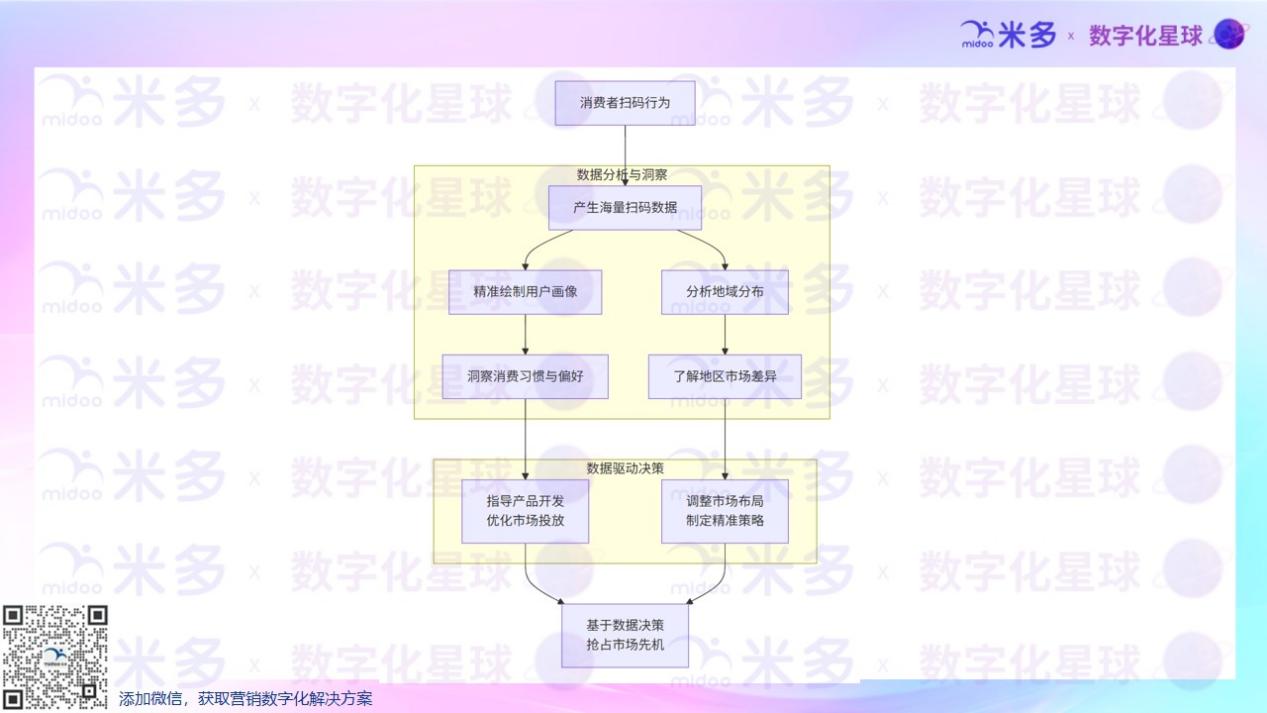 而且,溯源页还能当“营销跳板”。消费者扫码验真后,页面可引导“注册会员领复购券”“加会员群参与产区活动”,把一次性买家变长期触达的会员。 过去积累会员要花大量成本在门店引导、线上广告;现在靠一物一码溯源这个“天然流量入口”,能精准触达有信任基础的消费者,转化效率更高。 2)从“追溯”到“数据金矿” 每一次扫码行为,都不仅仅是一次简单的信息查询,更是一次宝贵的数据采集机会。通过对海量扫码数据的深入分析,品牌可以精准地绘制出详细的用户画像。 从而了解到不同地区、不同年龄段、不同性别消费者的消费习惯、偏好特点等信息,从而更加准确地把握市场需求的变化趋势。