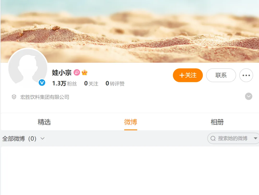 辞职后,宗馥莉迅速推出了新品牌“娃小宗”。10月11日,一个名为“娃小宗”的微博账号已完成平台认证,认证主体为宏胜饮料集团有限公司。