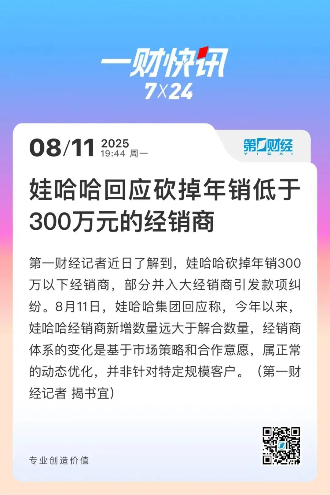 后经新闻报道,宗馥莉已于9月12日向娃哈哈集团有限公司辞去公司法定代表人、董事及董事长等全部核心职务,并已通过集团股东会和董事会的相关程序,正式退出娃哈哈集团的核心管理层。此时,距离她正式执掌这家饮料巨头不过1年14天。