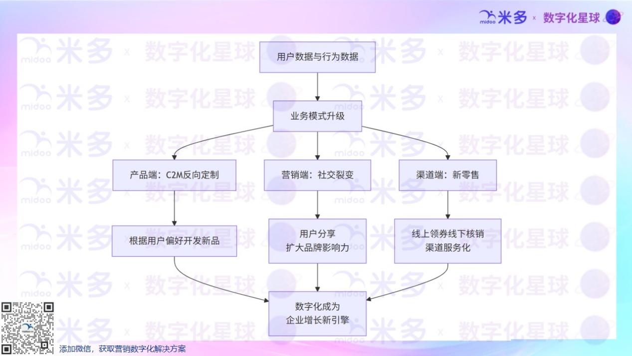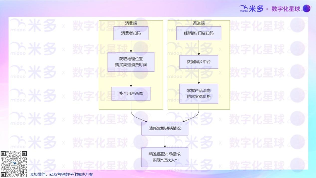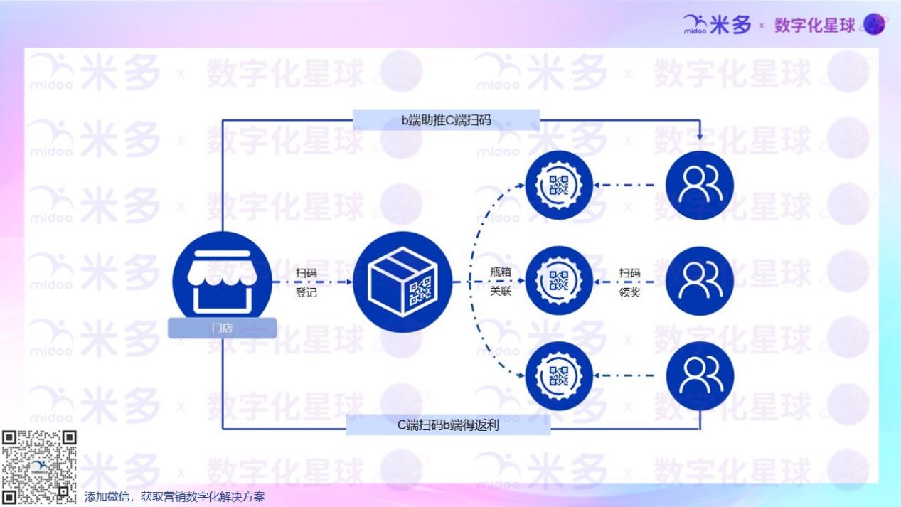在营销端,可以开展社交裂变营销,让用户在享受福利的同时,主动分享品牌活动给身边的人,比如“邀请好友扫码,双方都得奖励”,借助用户的社交圈扩大品牌影响力; 在渠道端,可以重构线上线下一体化的新零售模式,用户线上扫码领券,线下终端核销消费,同时终端通过数据中台实时了解用户需求,提供更精准的服务,让渠道从“单纯卖货”转向“服务+卖货”的综合载体。 05总结 商超自营酒的崛起,是消费市场数字化进程中的一个缩影。传统酒企要实现真正的“翻身”,必须从根本上重构与用户的连接能力。一物一码作为数字化转型的枢纽,不仅是技术工具,更是企业从“渠道驱动”向“用户驱动”转型的战略支点。 当每一瓶酒都成为品牌直达用户的数字触点,当每一次扫码都在深化品牌与消费者的情感连接,传统酒企就能在数字化浪潮中重新掌握市场主动权。 参考资料: [1] 京东酒业《京觅气泡黄酒上新——气泡+黄酒鲜活新体验》 [2] 大象新闻《胖东来救“酒鬼”,“裸奔”击透白酒成本魔瓶?》 [3] 酒说《胖东来、盒马们卖爆的白酒单品,为什么是它们?》 [4] 广州酒类行业协会《【行业资讯】2025年中国白酒市场中期报告发布》 关于米多 米多公司成立于2014年,是国内领先的营销数字化整体解决方案提供商,在营销领域致力于以企业业务能力(EBC)为核心,构建基于“立体连接、数据共通、流量共享、全景共鸣、全域赋能、全链共赢”的产业互联网营销服务平台,赋能企业通过“网络协同”和“数据智能”双螺旋引擎,用数字化驱动业务增长。累计服务酒类行业、快消行业、日化家清行业、化工建材行业、茶叶行业等品牌类企业逾3000家,包括茅台、可口可乐、宝洁、高露洁、维达、立白、雪花啤酒、劲牌、绿箭、嘉士伯、美涂士、华新集团等。 如想获取“营销数字化解决方案”,请私聊我~ 声明:此篇为米多公司的原创文章,转载请标明出处。链接:https://www.ebcone.com/sys-nd/276.html