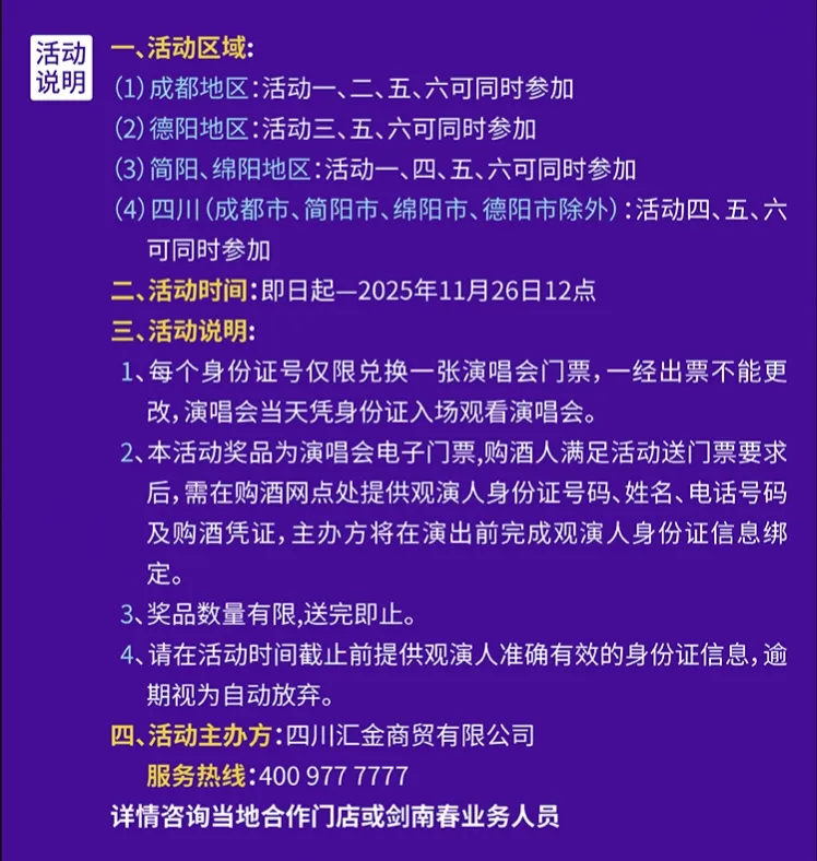 对终端门店老板来说,卖酒最缺的是什么?是“让消费者买单的理由”。平时推销,只能说“我们的酒好”“现在有折扣”,消费者不一定买账。但剑南春的演唱会活动,给了门店老板一个“硬通货”:“买我们的酒,能送明星演唱会门票”。