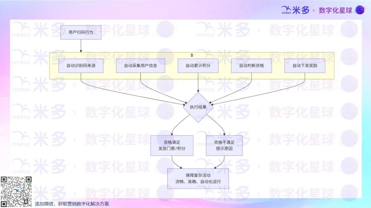 它能够自动识别每一个产品码,采集用户的扫码数据,根据预设的规则自动累计积分,实时判断用户是否满足兑换条件,并在条件满足时自动下发相应的奖励。整个过程完全自动化,不需要人工干预,大大提高了活动的效率和准确性。