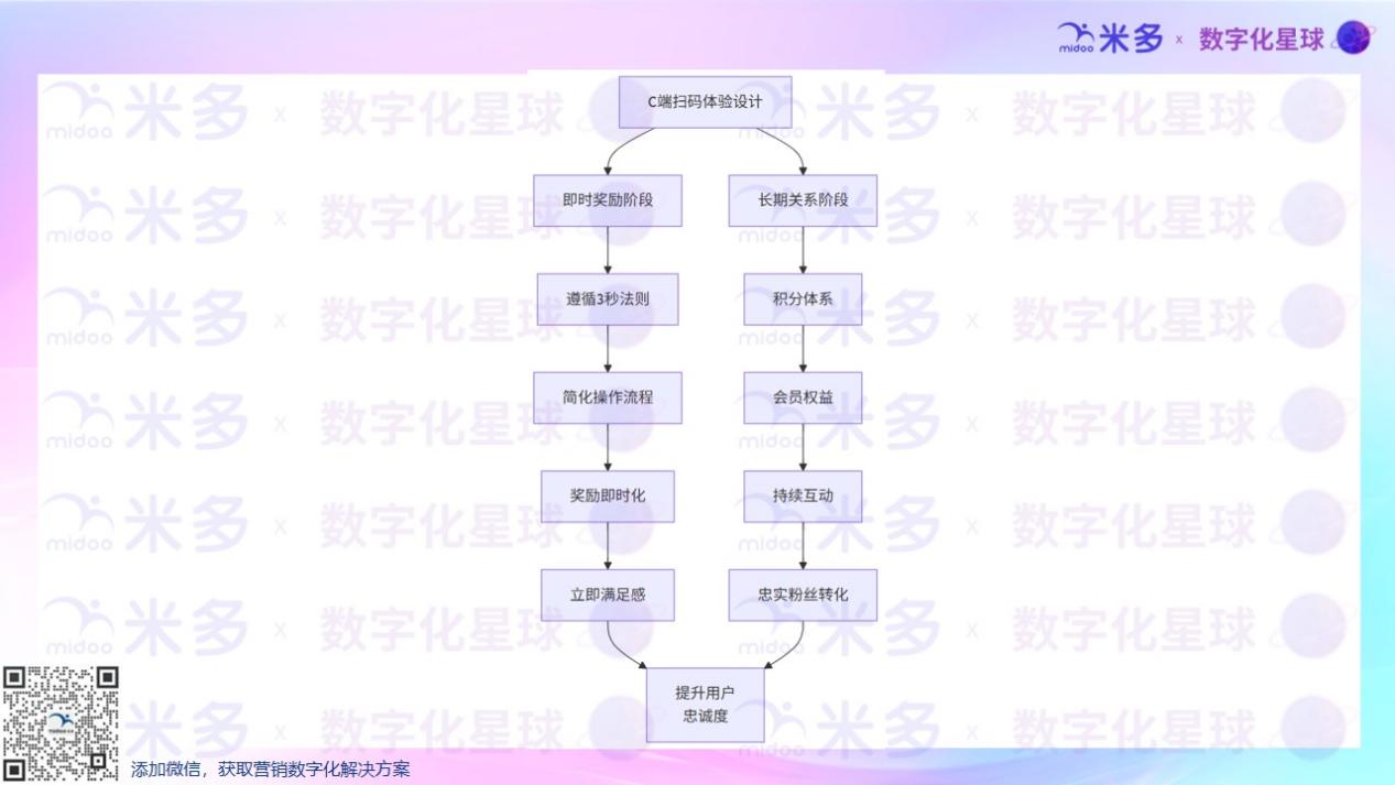 每一个二维码都相当于一个独立的营销单元,只有当产品被实际开箱或销售时,同时领奖人符合身份要求,相应的奖励才会被激活。这种基于真实动销的激励方式,能够确保营销费用真正用到“"刀刃"”上。 同时,一物一码还支持基于真实数据的分等级奖励机制。品牌可以根据不同区域、不同门店、不同人员的实际表现,设置差异化的奖励标准,实现激励的精准化。这种做法不仅能够提高营销费用的使用效率,还能够激发渠道各环节的积极性,形成良性的竞争氛围。 通过这种方式,品牌可以将渠道激励从粗放式的补贴转向精准化的驱动,让每一分营销预算都花在“"真正推货的人"”身上,从而实现渠道动力的精准传导。 2)设计**体验的C端扫码旅程,提升用户忠诚 在用户注意力稀缺的时代,如何在短时间内抓住用户的兴趣并建立长期的关系,是每个品牌都面临的挑战。一物一码技术为解决这一问题提供了新的思路。 优秀的扫码体验应该遵循“"3秒法则"”,即用户扫码后能够在3秒内获得明确的反馈或奖励。过于复杂的参与流程会大大降低用户的参与意愿,因此活动设计应该尽量简化操作步骤,让用户能够轻松完成扫码互动。 奖励的即时化和价值化是提升用户体验的关键,用户扫码后能够立即获得实实在在的好处,这种即时满足感能够有效提高用户的满意度和参与积极性。