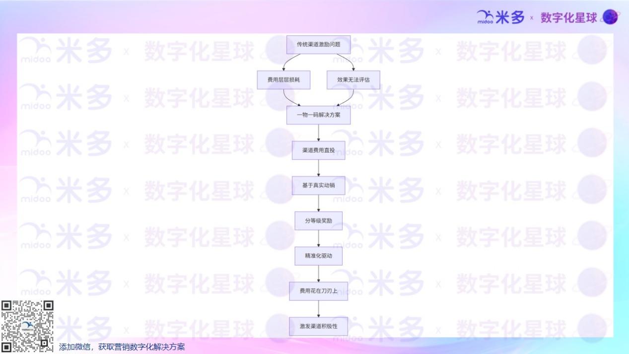 同时,系统还需要具备实时数据统计功能,并**能够具备数据分析能力,一方面能够及时反映活动的参与情况和效果,为运营决策提供支持。另一方面,通过实时活动监控,运营人员可以及时了解活动的进展情况,发现并解决可能出现的问题。 而且通过用户画像分析,品牌可以深入了解目标用户的特征和行为习惯,为精准营销提供依据;通过效果评估报告,品牌可以全面评估活动的投入产出比,总结经验教训,为后续的活动优化提供参考。 03一物一码如何为雪糕营销注入确定性 1)构建B端激励体系,让渠道动力精准传导 传统的渠道激励方式往往存在效率低下、资源浪费等问题。营销费用经过层层分销,最终到达终端的实际投入往往大打折扣,而且很难准确评估每一分钱的实际效果。 而通过一物一码技术的出现,则能够将营销费用直接投放到具体的产品、具体的渠道角色上,品牌就可以实现渠道费用的精准直投。