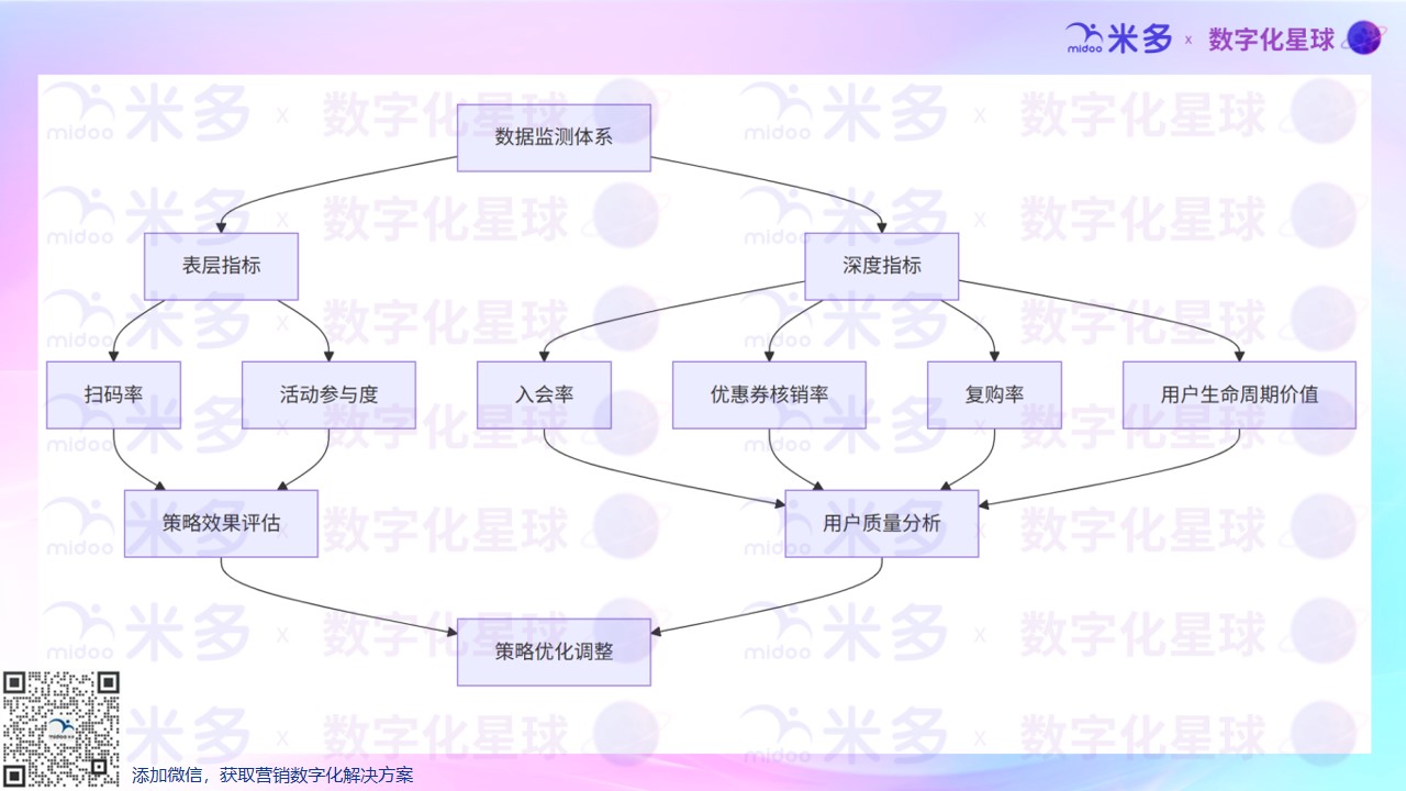 除了传统的扫码率指标外,还应该重点关注入会率、优惠券使用/核销率、复购率和用户生命周期价值等深度指标。这些指标能够更全面地反映扫码活动的实际效果,为后续的策略优化提供数据支撑。