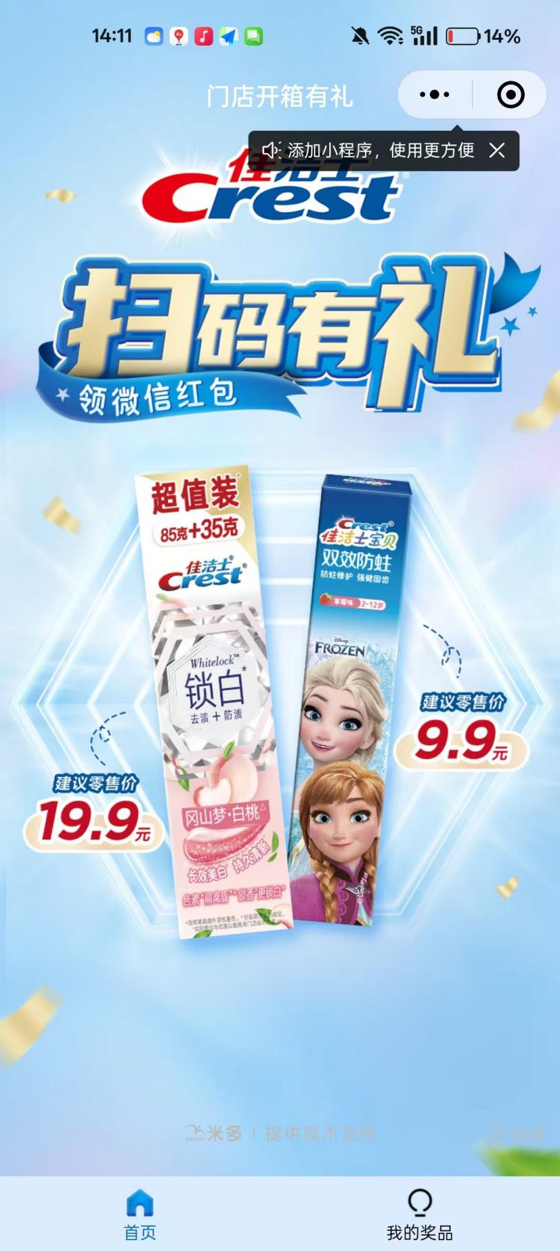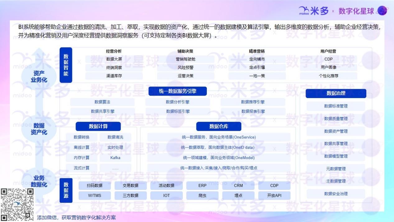 写在最后:小编与楼下超市老板聊天中,了解到一些宝洁的b端活动,如佳洁士的扫码有礼等,通过给终端福利,有效地把终端进货信息掌握在手中,为后续的铺货和动销策略提供了支持。其本质上是为企业数字化建设中最关键的“活”数据采集提供路径。扫码添加数字化星球企业微信,获取宝洁数字化增长资料包。 关于米多 米多公司成立于2014年,是国内领先的营销数字化整体解决方案提供商,在营销领域致力于以企业业务能力(EBC)为核心,构建基于“立体连接、数据共通、流量共享、全景共鸣、全域赋能、全链共赢”的产业互联网营销服务平台,赋能企业通过“网络协同”和“数据智能”双螺旋引擎,用数字化驱动业务增长。累计服务酒类行业、快消行业、日化家清行业、化工建材行业、茶叶行业等品牌类企业逾3000家,包括茅台、可口可乐、宝洁、高露洁、维达、立白、雪花啤酒、劲牌、绿箭、嘉士伯、美涂士、华新集团等。 如想获取“营销数字化解决方案”,请私聊我~ 声明:此篇为米多公司的原创文章,转载请标明出处。链接:https://www.ebcone.com/sys-nd/305.html